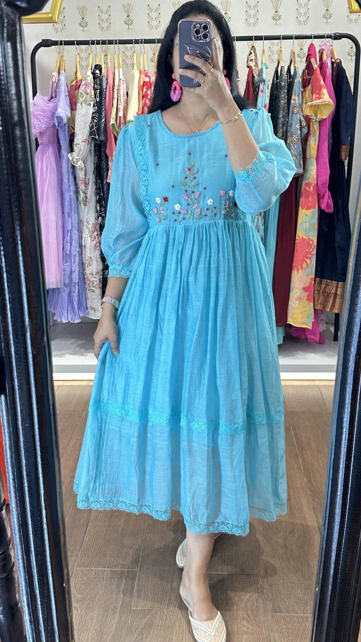 Sky Blue Mulchanderi Handworked Frock